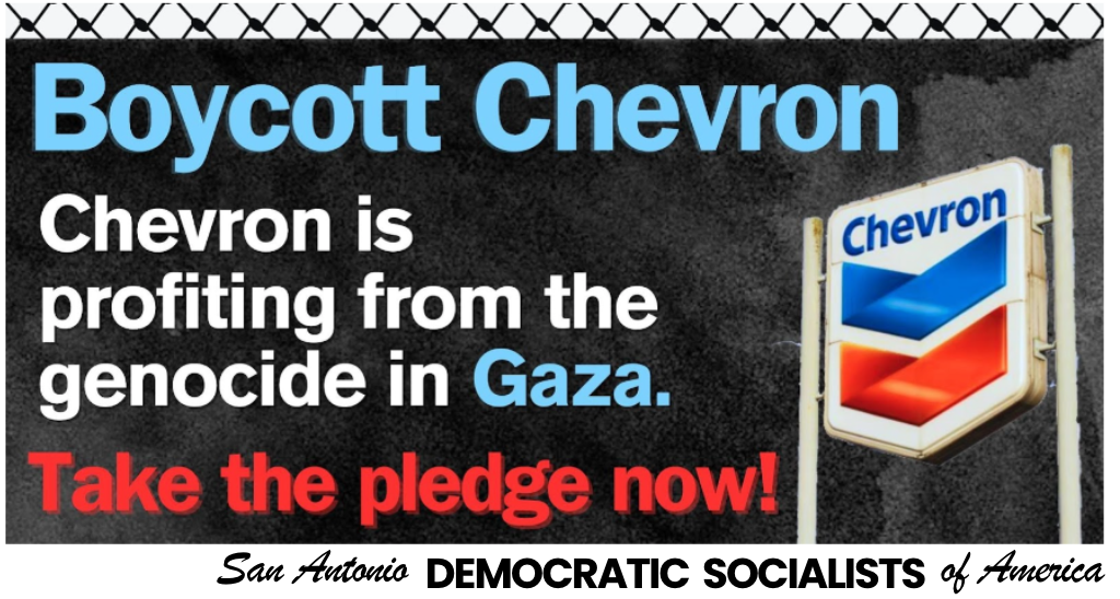 Take the pledge and join the campaign to boycott all Chevron gas stations right here in San Antonio and say STOP fueling genocide! 🇵🇸 ✊